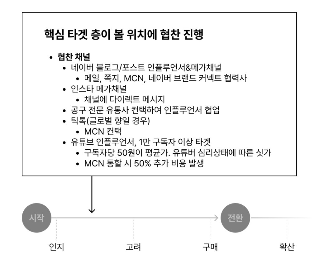 인플루언서 및 메가채널에 메일, 쪽지, MCN, 협찬 서비스사를 통해 접근한다.
