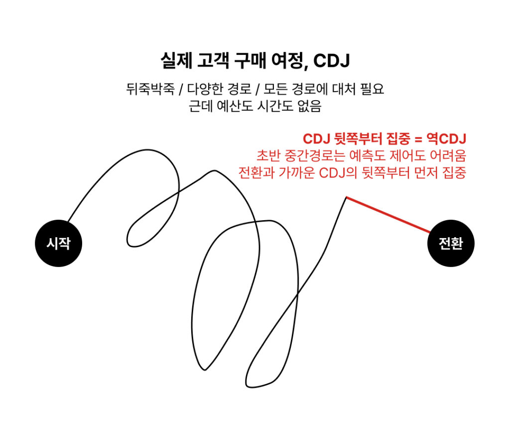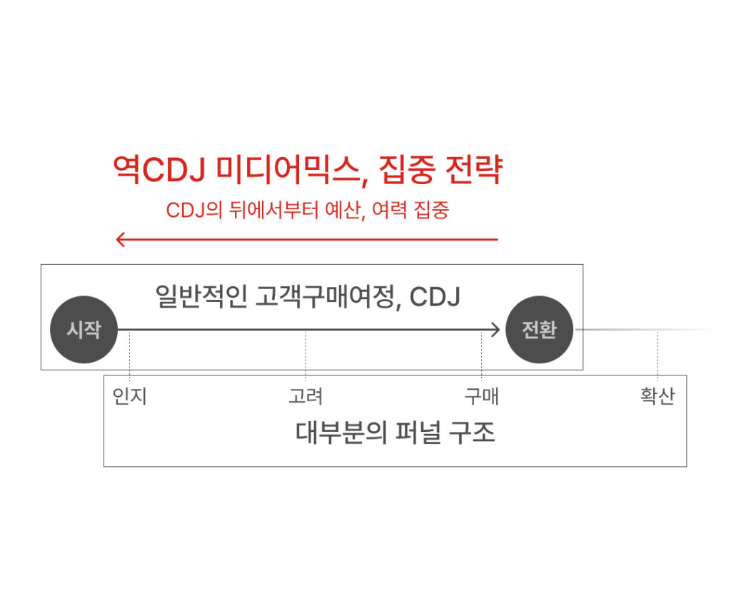 그것이 고객구매여정을 뒤집어서 광고 예산을 배분하는 역CDJ 미디어믹스였다.