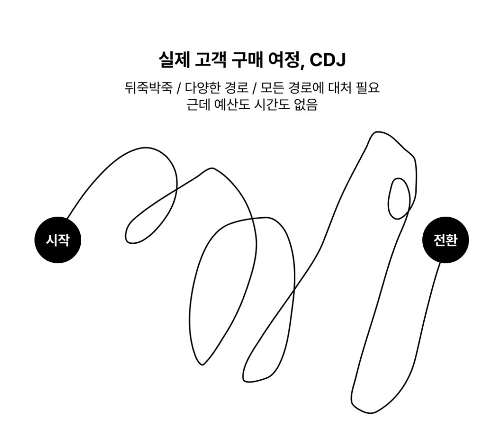 문제는 실제 고객의 구매 여정이 마케팅 퍼널처럼 깔끔하지 않다는 것이다.